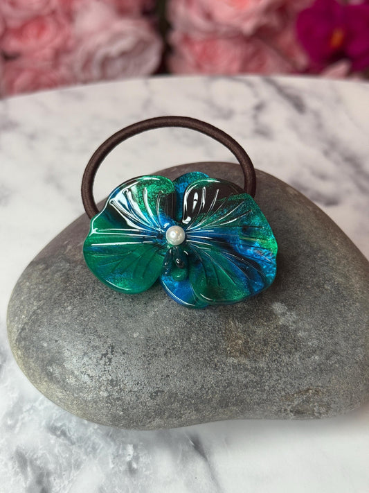 Orchid Hair Tie • Teal Orchid Hair Ponytail Holder