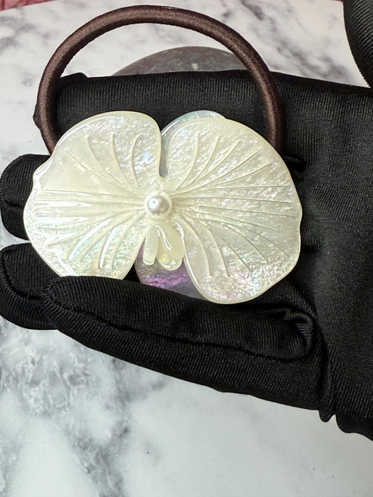 Orchid Hair Tie • White Iridescence Orchid Hair Ponytail Holder