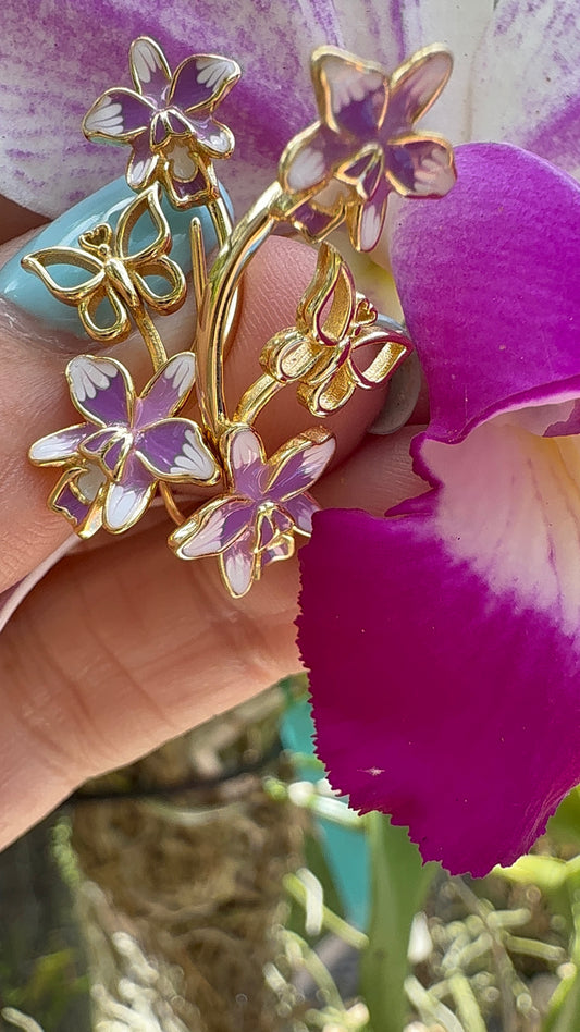 Climbing Earrings - Heavenly Bloom Violacea-inspired Orchids & Butterfly Earrings