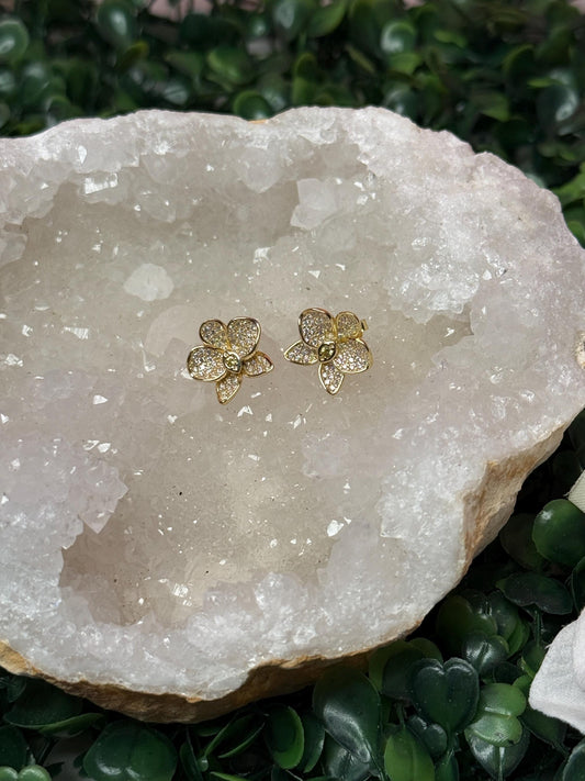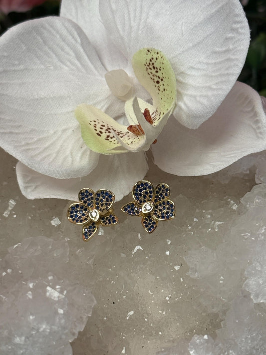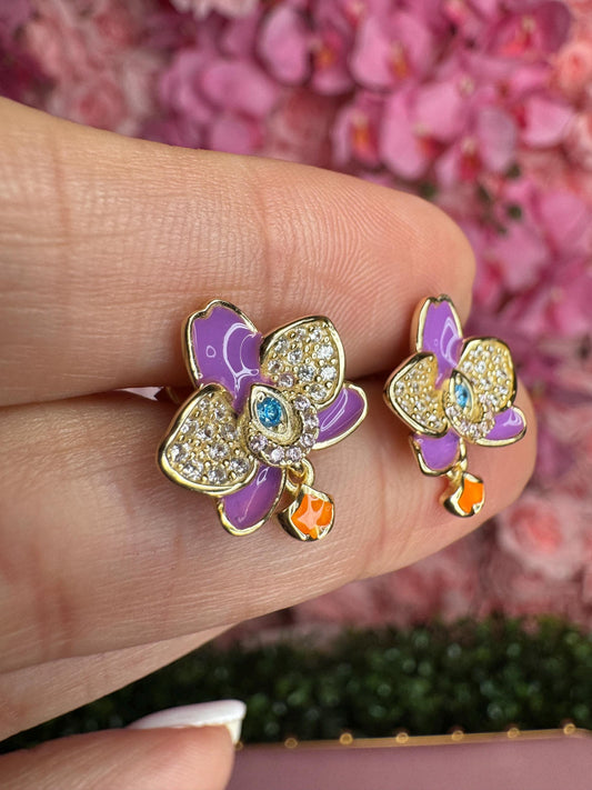 The Phalaenopsis Novelty Collection: Purple Zircon Gold Orchid Stud Earrings