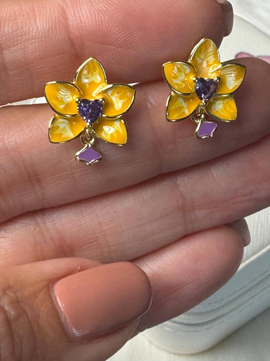 Phalaenopsis Heart Novelty Collection: Yellow & Purple Phalaenopsis Studs