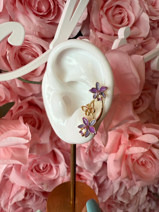 Climbing Earrings - Heavenly Bloom Purple Tones Violacea-inspired Orchids & Butterfly Earrings