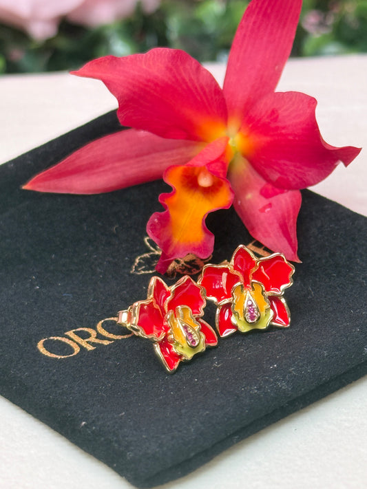 The Potinara Collection: Red Cattleya Orchid Earrings