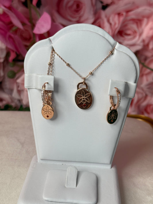 Harmony Rose Gold Collection : Etched 18c Rose Gold Orchid Necklace & Earrings