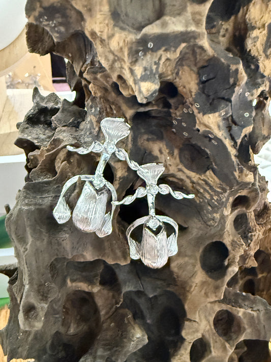 Ghost Orchid Silver Earrings Dangles: Divergent Duos Collection