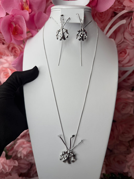 Harmony Gold Collection: Etched White Gold Orchid Necklace and Earrings