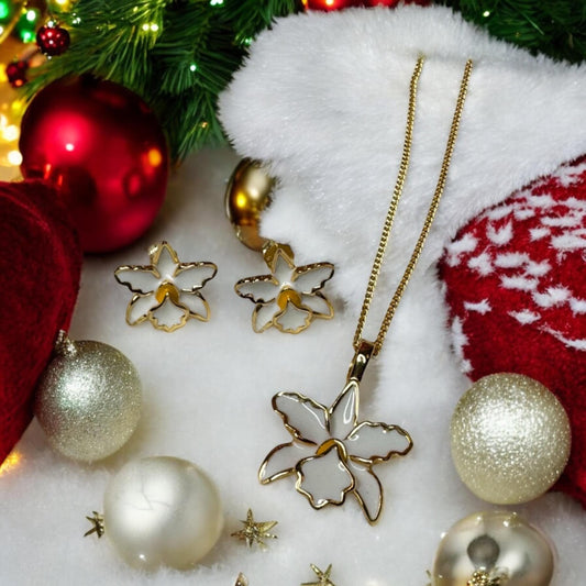 La Colombiana Collection: Alba Cattleya Trianae Orchid Jewelry Set