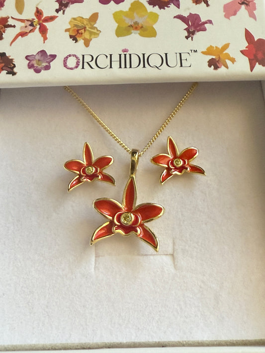La Colombiana Collection: Red Cattleya Trianae Orchid Jewelry Set