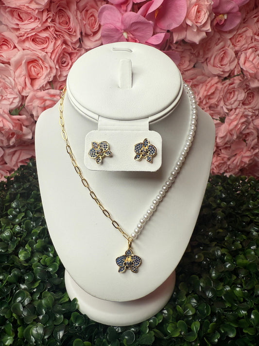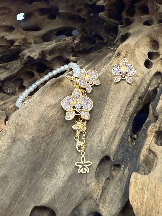 Pearl Orchid Collection: Phalaenopsis Pearl Drop Earrings and Pendant Necklace Jewelry