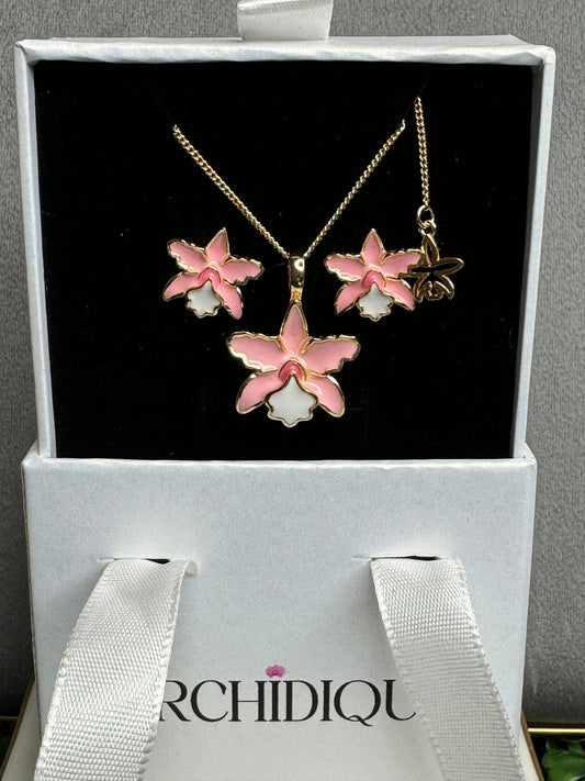 La Colombiana Collection: Soft Pink & White Cattleya Cattleya Trianae Orchid Jewelry Set