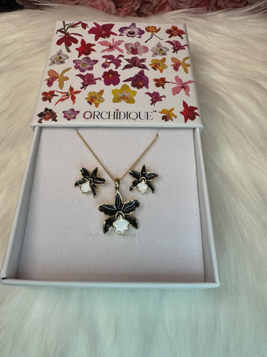 La Colombiana Collection: Black Cattleya Trianae Orchid Jewelry Set