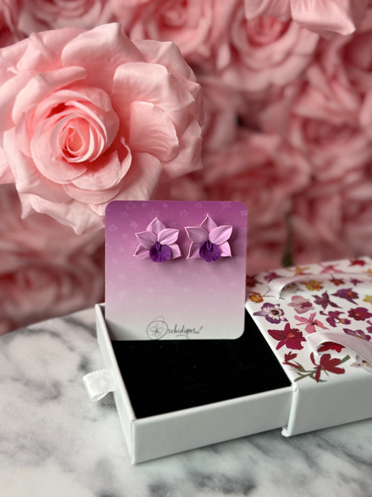 Handmade Orchid Oasis Collection : Lavendar Splash Cattleya Earrings