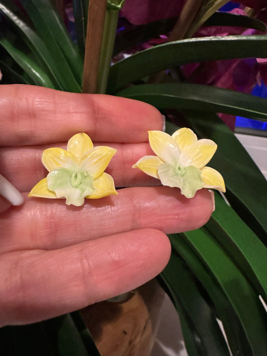 Handmade Orchid Oasis Collection : Yellow Flower Stud Earrings