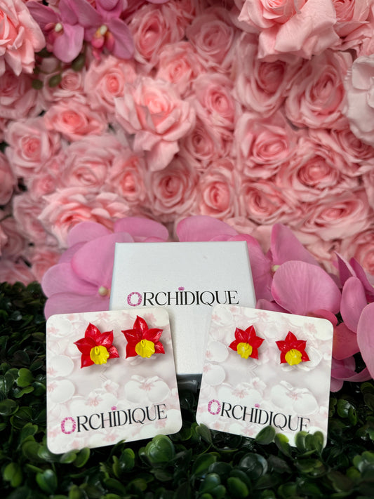 Handmade Orchid Oasis Collection : Red Cattleya Earrings