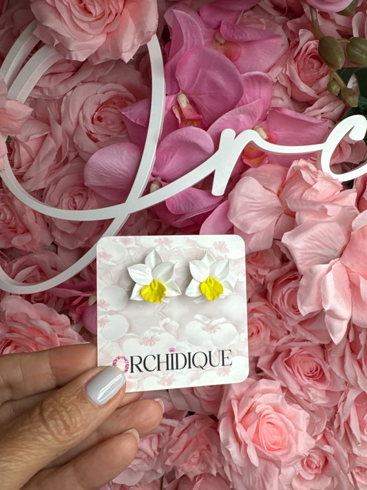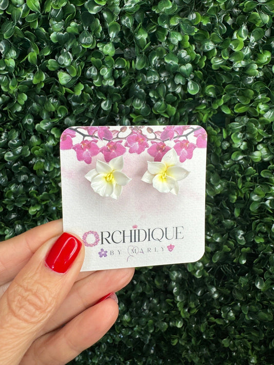 Whimsical Handmade Collection: White & Yellow Cattleya Orchid Stud Earrings