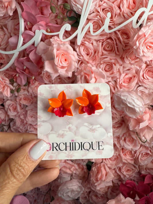 Handmade Orchid Oasis Collection : Orange Cattleya Orchid Earrings