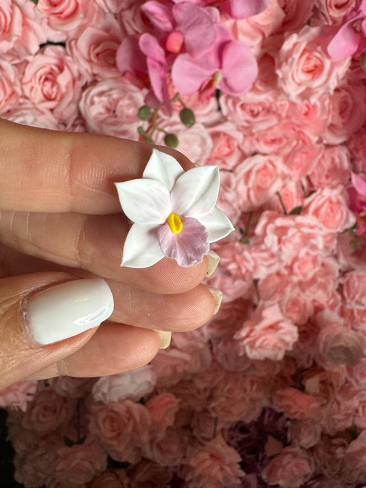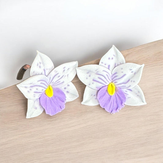 - Polymer Clay Mastery: Each earring is meticulously sculpted from polymer clay, capturing the intricate details and textures of real orchids.