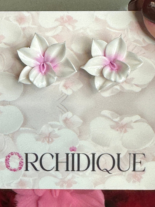 Handmade Orchid Oasis Collection : White Blush Cattleya Earrings