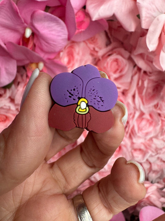 ✨ Add a touch of orchid flair to your favorite footwear with our delightful collection of shoe charms, designed to fit either Bogg Bags and Crocs! ✨