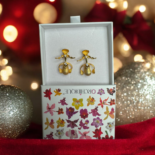 Schomburgkia Gold Orchid Dangle Earrings