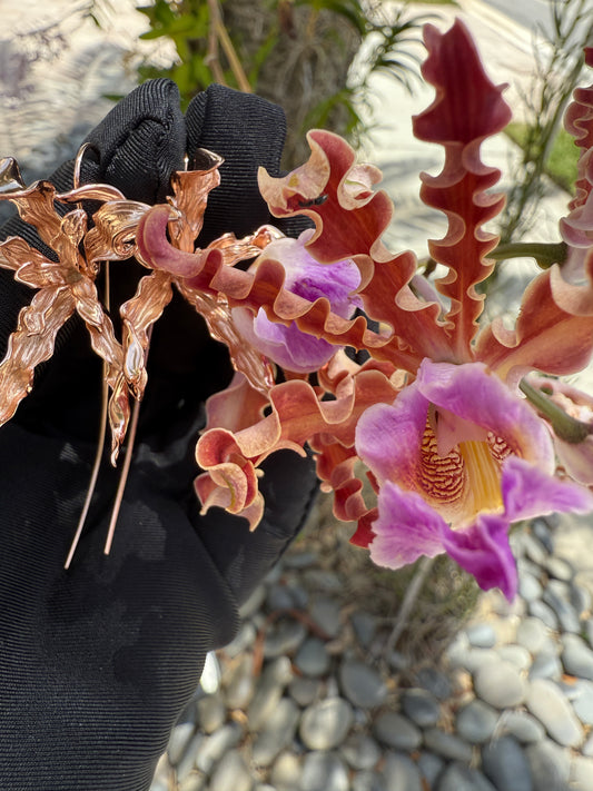 Meticulous: Schomburgkia Rose Gold Orchid Flower • Joyería de Orquídeas