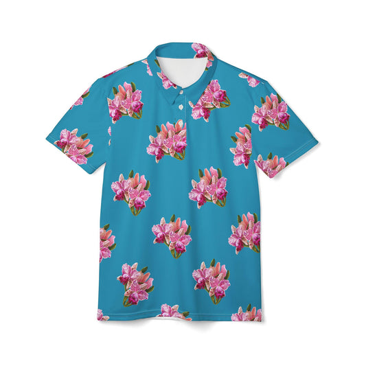 Pink & Turquoise Orchid Polo Shirt - Men's Floral Polo