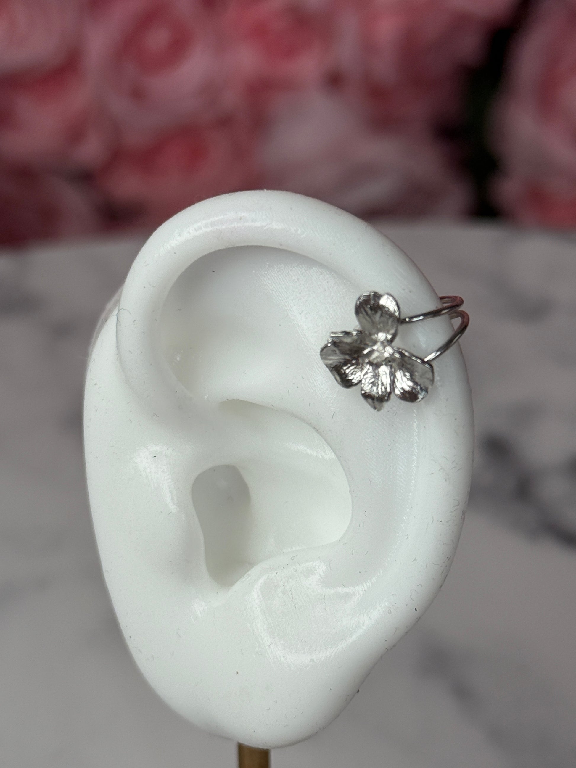 Inspired by the beautiful Cattleya orchid, this sterling silver ear cuff is a stunning way to add a floral touch to your look without a piercing. Simply press it gently to secure it around your ear for a comfortable fit.