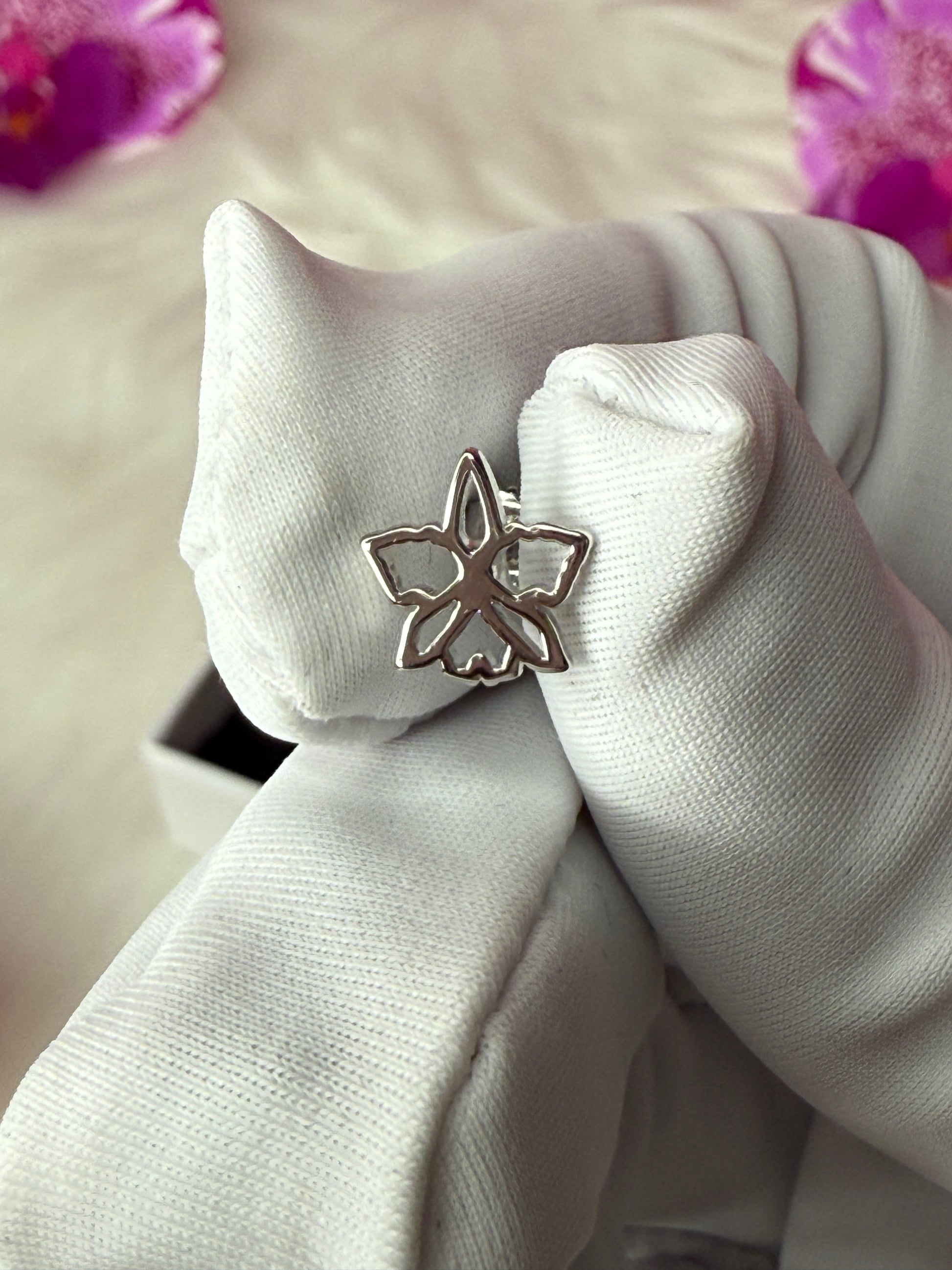 Add a subtle touch of elegance to your look with our Orchid Stud Earrings. These studs feature a delicate orchid silhouette, crafted from luxurious S925 sterling silver, making them both durable and hypoallergenic. Their dainty 6mm size is perfect for a second piercing or for a minimalist style, and they come with secure screw backs for a comfortable and worry-free wear.