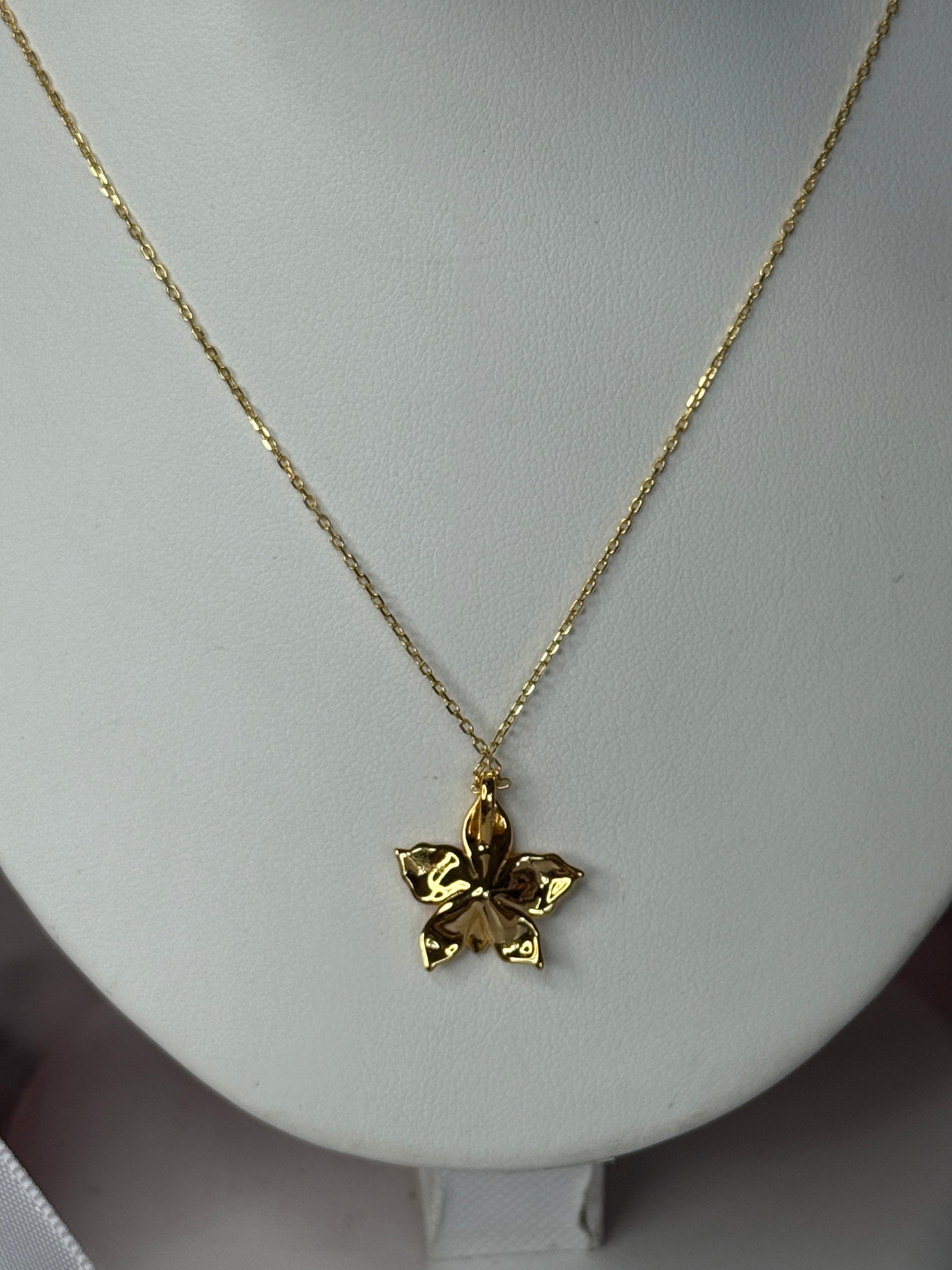Gold Orchid Necklace ✨ Sterling Silver Orchid Pendant ✨ Elegant Flower Necklace
