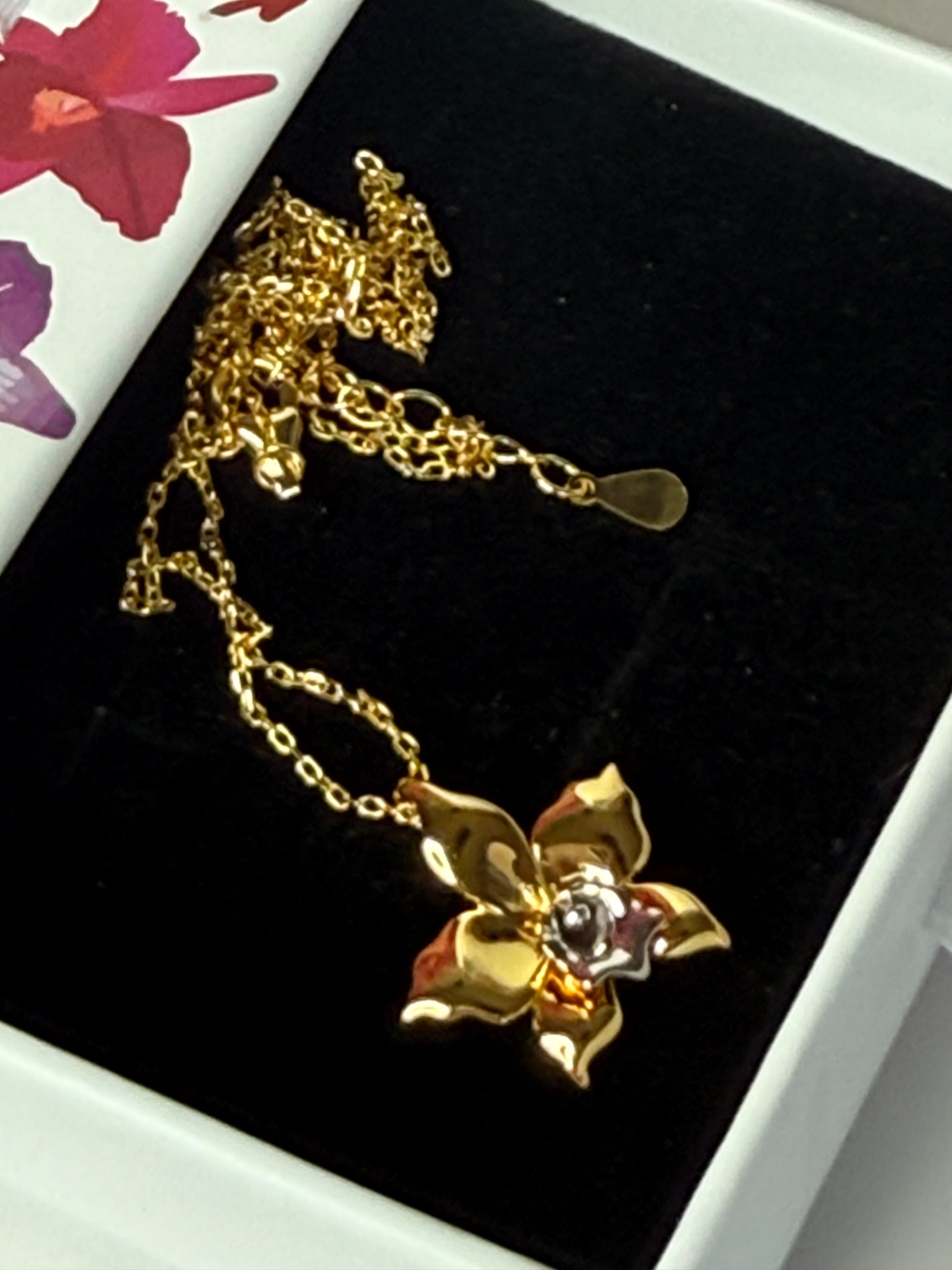 Gold Orchid Necklace • Sterling Silver Orchid Pendant