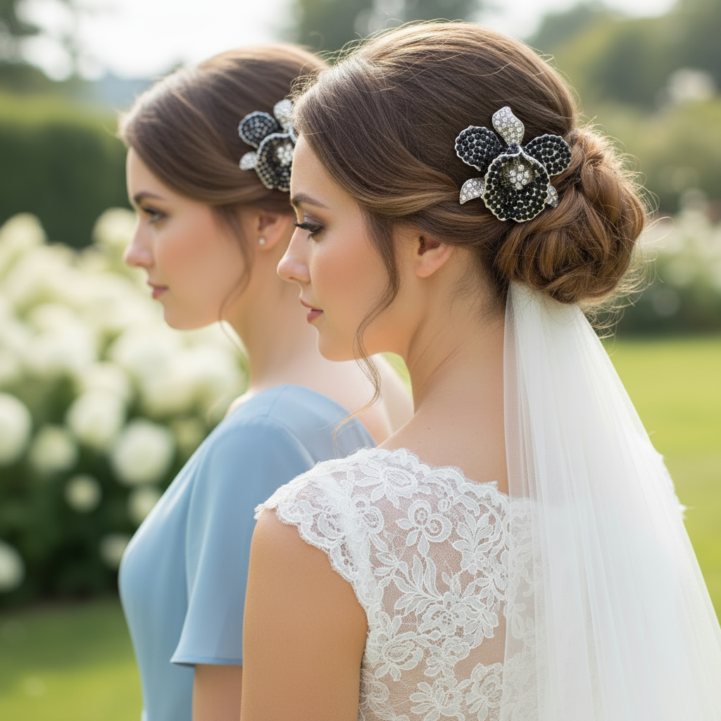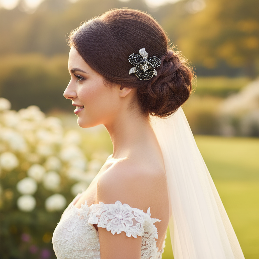 These beautiful orchid clips feature a detailed design with brilliant rhinestones, perfect for adding a touch of elegance. You can use them as a hair accessory or as a brooch.