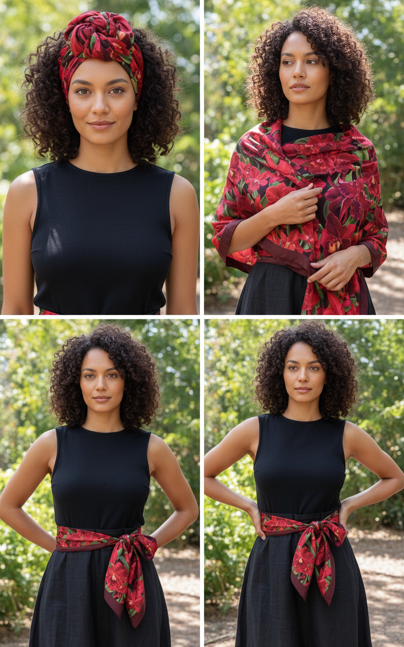Orchidique Red- Black Orchid Blooms Scarf