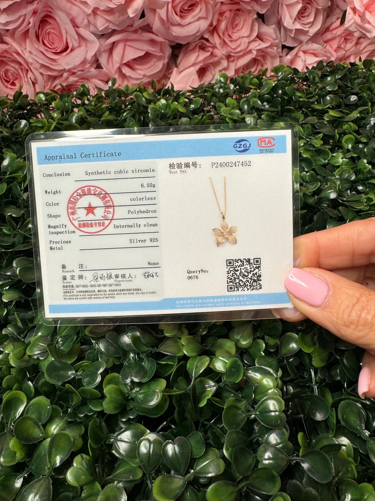 - Design: Sparkling all-zircon floral pendant with a classic and elegant aesthetic.