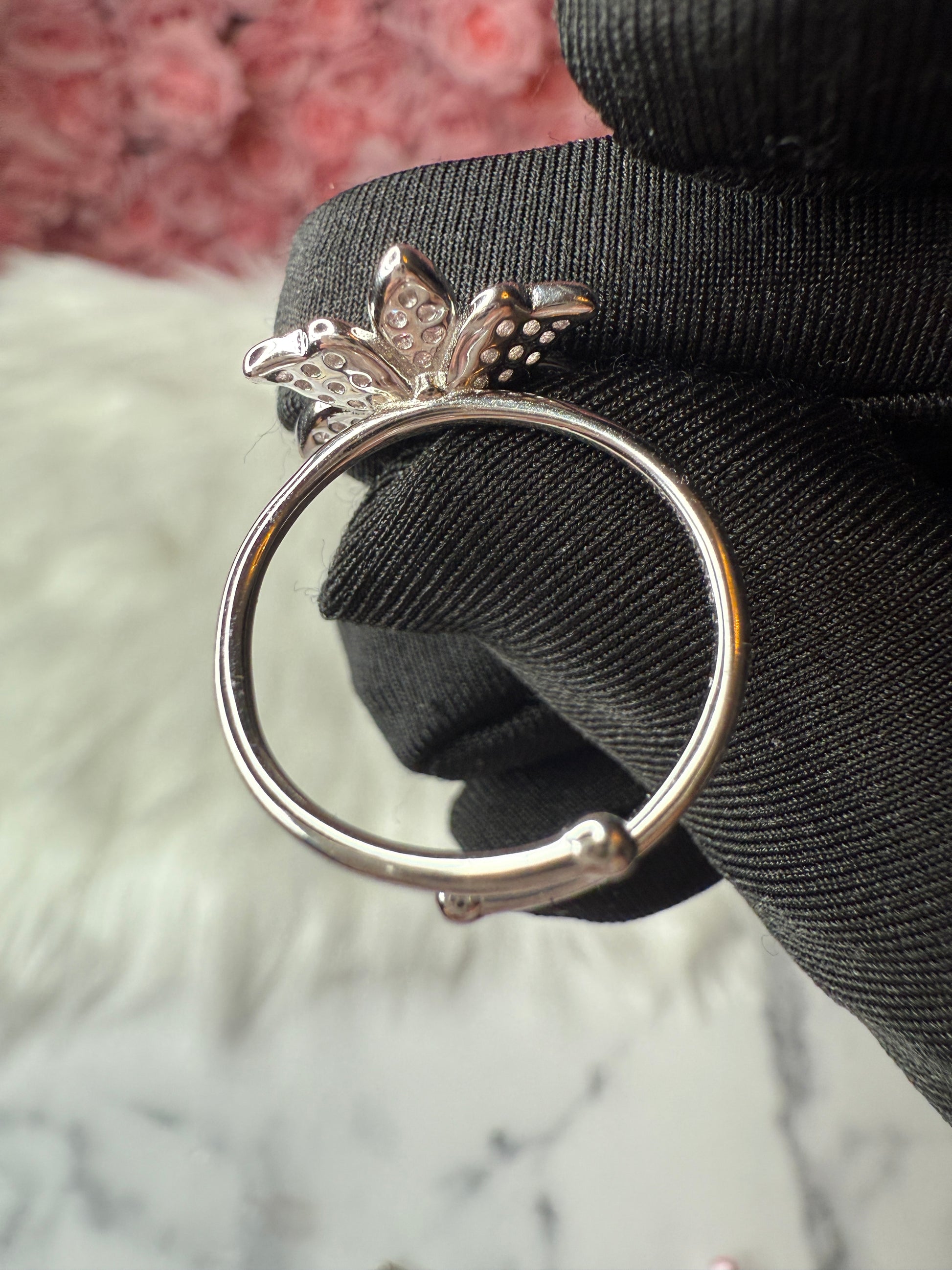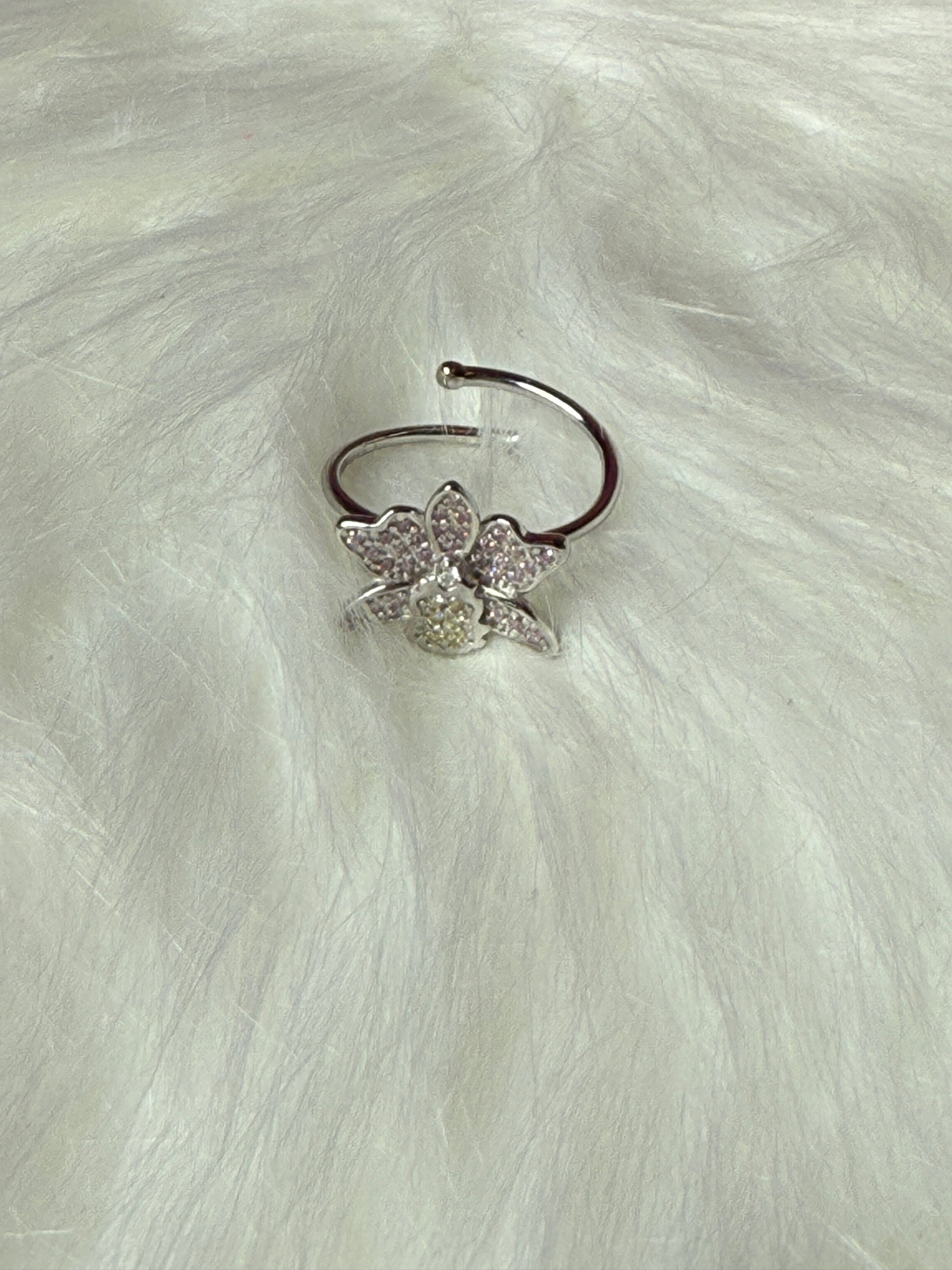 Design: This exquisite ring features a single, beautiful Cattleya orchid designed to gracefully wrap around your finger. The entire piece is fully adorned with brilliant, all-over lab-grown zircons, creating our exclusive "Shimmer Me" radiance.
