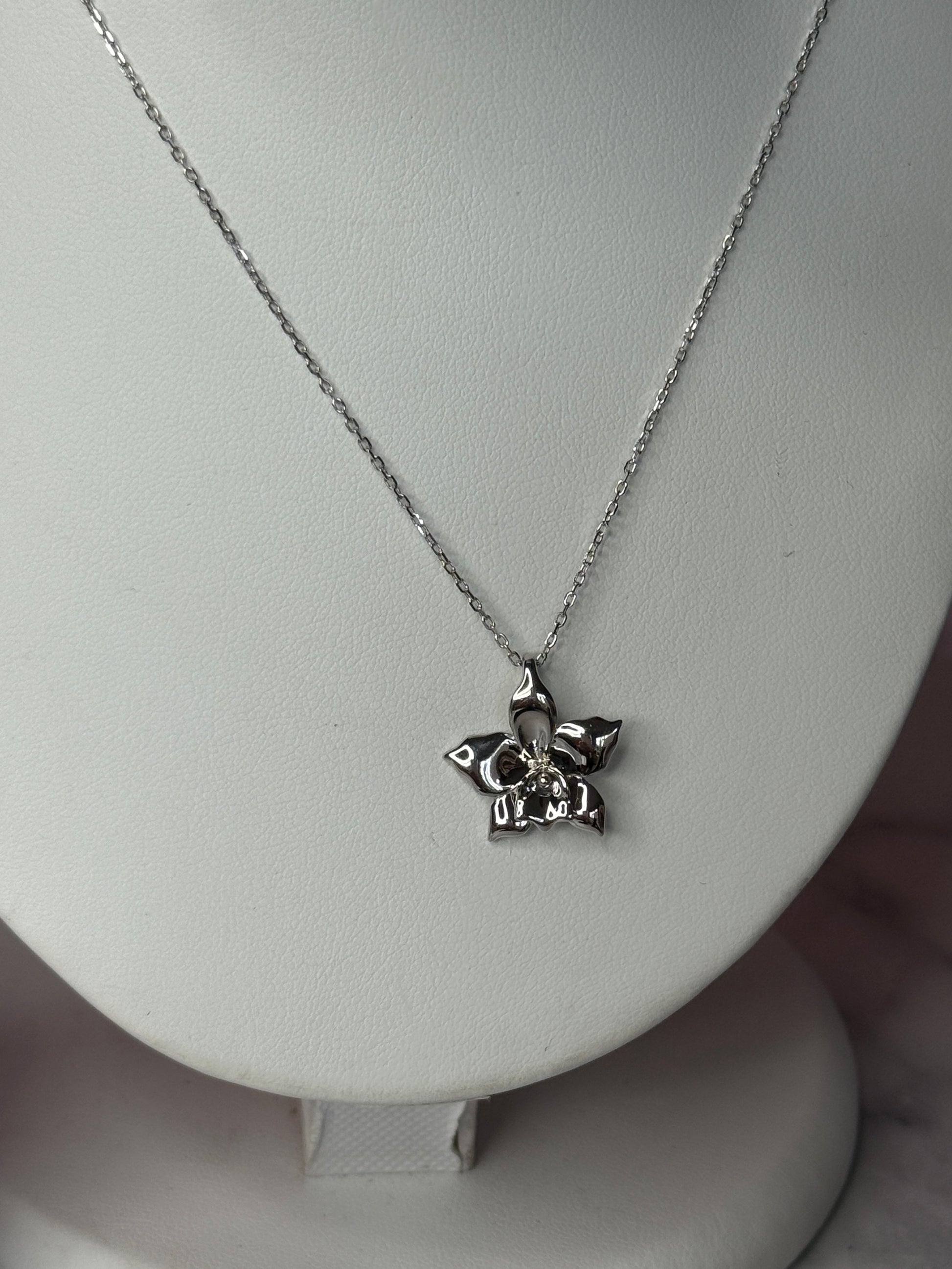White Orchid Necklace ✨ Sterling Silver Orchid Pendant ✨ Elegant Flower Necklace